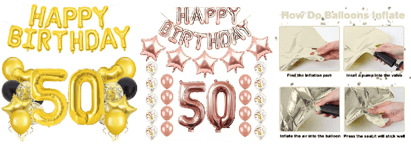 50. sünnipäeva õhupall on eksklusiivne kaunistus tähtsate eluhetkede tähistamiseks, sealhulgas erineva stiili ja moeka värviga õhupalliesemed ning seda saab kohandada 50-aastaste teemasõnade, sünnipäevasõnumite või eksklusiivsete mälestusmustritega. Õhupallide valik kvaliteetsest lateksist ja toidukvaliteediga alumiiniumfooliumist, tugiheelium, kahel viisil täispuhutav õhk, ohutu ja vastupidav. Kohandatud 50. sünnipäeva õhupallikomplekti tarvikud hõlmavad teemapaberist sünnipäevabännerit, paberist kaardi sisestamist, rippuvat keerutamist, kohandatud tausta, laudlina ja ühekordsete lauanõude komplekti. Paindlik õhupallikombinatsioon ja tugitoodete kokkusobitamine sobivad erinevateks oludeks nagu pere sünnipäeva bankett, vanade sõprade koosviibimine, ettevõtte aastapäeva tähistamine, restorani paigutus jne.