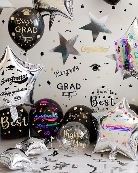 Meie "Happy Graduation" õhupallikleebised on loodud koolilõpupidude rõõmsa õhkkonna suurendamiseks. Igal kleebisel on pidulik fraas või kujundus, mis kajastab saavutuste vaimu. Kasutage neid kleebiseid ainulaadsete kaunistuste loomiseks ning unustamatute fotode ja oluliste hetkede jäädvustamiseks pere ja sõpradega.