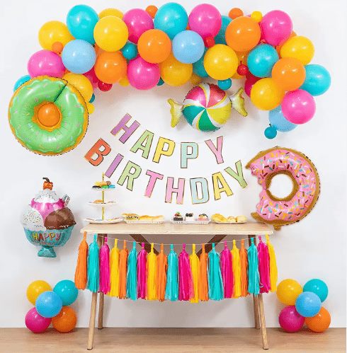 1. Õhupallide kombinatsioon: tavapärased stiilid hõlmavadmakroon roosa/sinine/kollane/lilla, kommitriibud, lainetäpid, mini-tarretisoakujulised õhupallid, enamasti 12-tollised 10-tollised 5-tollised kolmekihilised õhupallid, valmistatud naturaalsest lateksist, keskkonnasõbralikud ja lagunevad, kasutatakse koos fooliumõhupallidega, mõnele stiilile on lisatud litritega lateksist õhupallid, mis suurendavad sädelust, suured kogused ulatuvad 100 tk-ni. 150 tk.