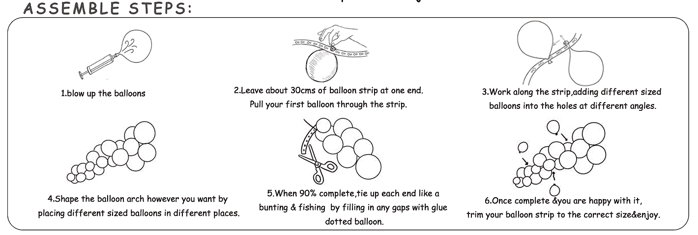 Komplekt sisaldab tervet komplekti materjale, nagu teemaõhupallid, õhupalliketid, liimipunktid, tarvikud jne. Ostjad saavad selle ilma täiendava sobitamiseta kokku panna, kui nad selle kätte saavad. See on väga konkurentsivõimeline omakasutuseks ja jaemüügiks.