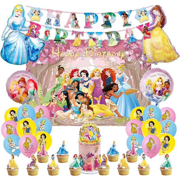 See Disney printsessi peovarustus koosneb õnne sünnipäevaks bännerist, koogitopsist, Disney Princessi trükitud lateksist õhupallist ja koogitopsist. Meie Disney printsessi sünnipäevapeo dekoratiivse lauanõude komplekt on erksate värvide ja armsate mustritega. Materjal on paks ja seda pole kerge kahjustada. See on valmistatud keskkonnasõbralikest ja mittetoksilistest materjalidest. Olenemata sellest, kas seda kasutavad lapsed või täiskasvanud, on see 100% ohutu. Selle komplekti taldrikud, tassid ja salvrätikud on valmistatud keskkonnasõbralikust biolagunevast paberist, mis tagab, et komplektis olevad kaunistused püsivad sündmuse armastuse tähistamise ajal heas korras. Meie isikupärase disainiga õhupallide, bännerite ja tordipealsete kombinatsioon meeldib kindlasti printsessisõpradele ja üllatab teie lapsi, sest see on printsessipilt, mis teie lapsi alati saatma.