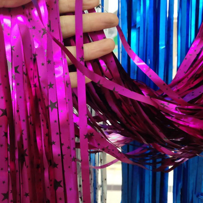 Spetsifikatsioonid: tavaline fooliumi kardina suurus on 1 meetri lai ja 2 meetri kõrgune. Mõnda toodet saab kohandada fooliumi kardina suurust ja värvi vastavalt kliendile, et see vastab erinevate stseenide kaunistusvajadustele.
