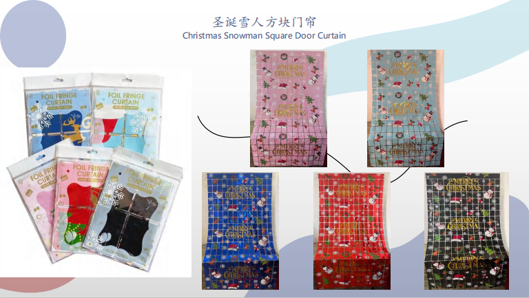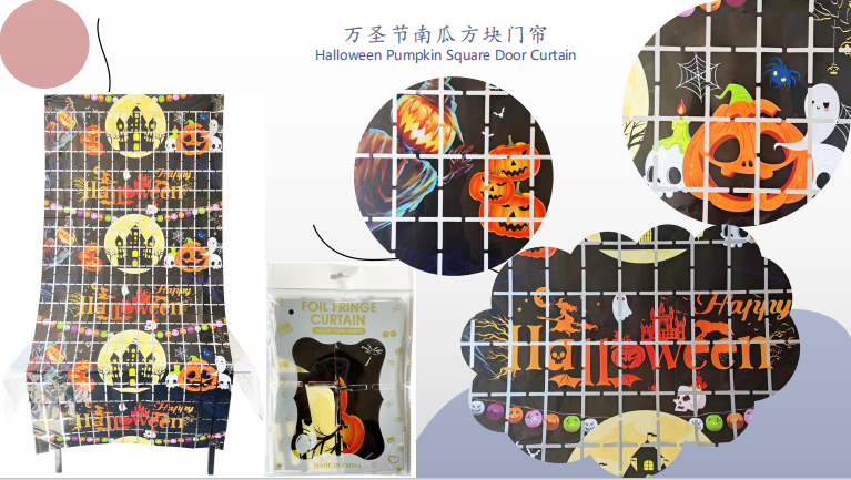 Nagu jõuluteemaline roheline ja punane fooliumkardin, Halloweeni-teemaline must ja oranž fooliumikardin ning fooliumikardin kõrvitsate, nahkhiiri, ämblike ja muude kujudega, mida saab kasutada puhkusekaunistamiseks kodudes, kaubanduskeskustes, baarides ja mujal.