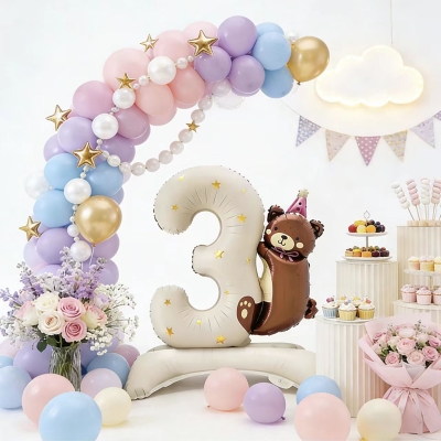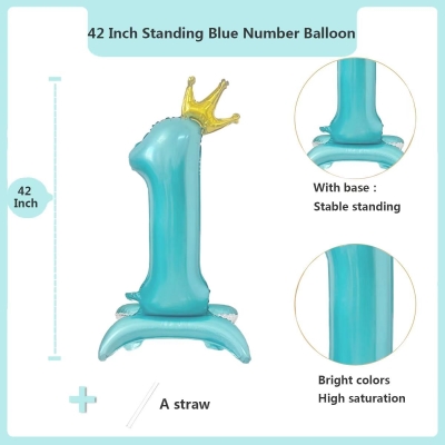 Thefooliumist seisvate numbrite õhupalliddekoratsioonidel on spetsiaalsed täispuhutavad alused. Nad seisavad kindlalt. Täiendavat tuge pole vaja. Paigutamine on paindlik ja tasuta. Neid on mitmes värvitoonis. Värvidest on sinine, roosa ja hõbedane. Numbristiilid on valmis. Need hõlmavad numbreid vahemikus 0 kuni 9. Need sobivad hästi erinevate teemadega. Teemadeks on sünnipäevad ja aastapäevade tähistamised.
