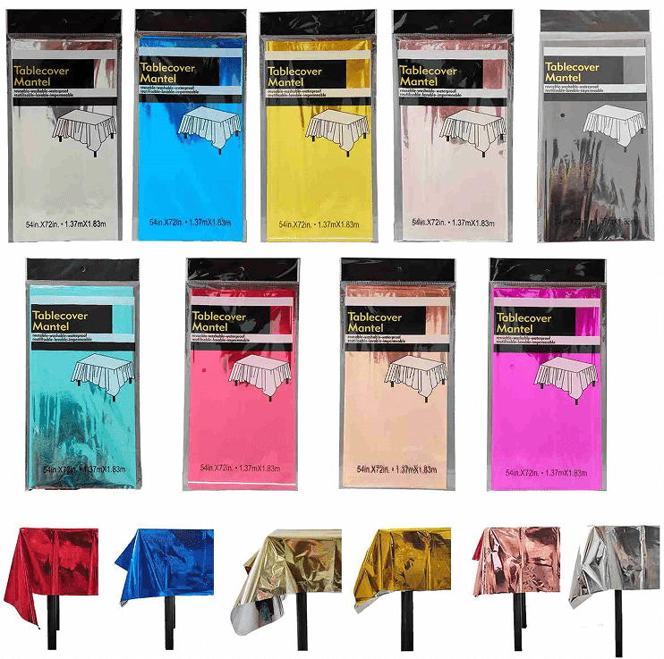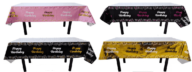 vikerkaarevärviline, multiloomade ja tordimustriga fooliumist laudlina, sobib laste sünnipäevapeole; kuldne, hõbedane, tähtede ja kirjamustriga laservärv, sobib täiskasvanute sünnipäevadeks, juubeli tähistamiseks, sõbrannade pidudeks jne, saab paigutada pere söögilaudadesse, hotelli peolaudadesse, õue piknikulaudadesse ja muudesse stseene.
