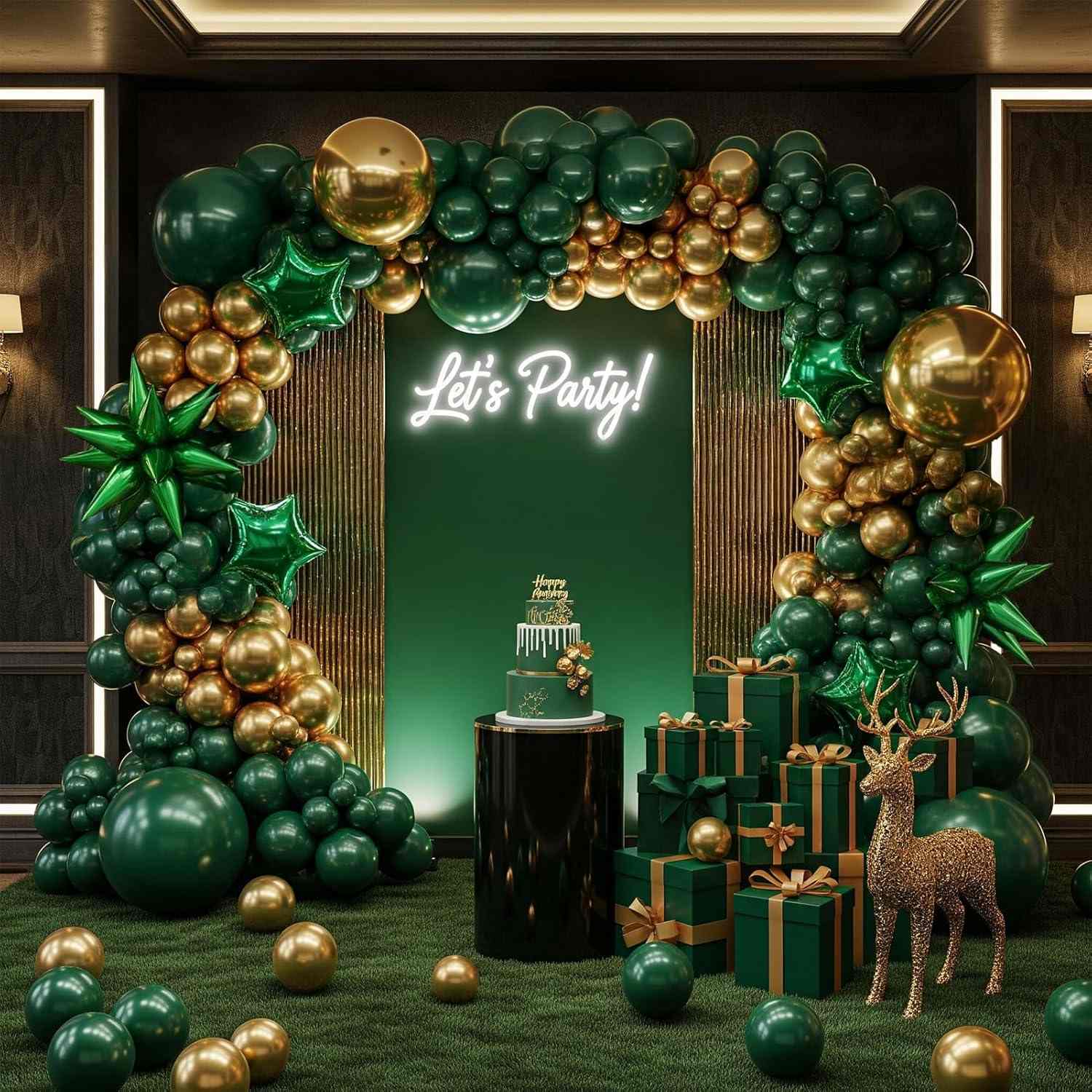 2. Roheline ja kuldne õhupallikaar brändiürituste jaoks