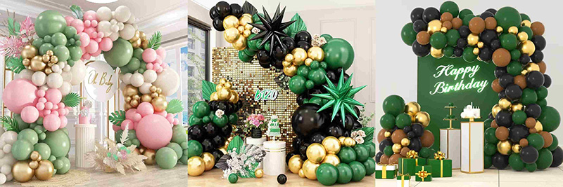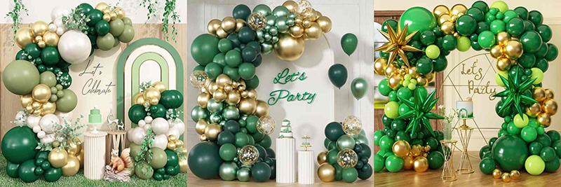 Võite kasutada valge või pirnivalge värvi õhupalle rohelise ja kuldse õhupallikaarega. See muutub pehmeks ja soojaks ning sarnaneb kevadise aia värskuse tabamisega; kui see on ühendatud roosade õhupallidega, võib see luua elava tunde, mis on magus, ilma et oleks räpane, lisades romantilist õhkkonda beebipidudele ja tüdrukuteemalistele pidudele; isegi kombineerituna sügavamate värvidega, nagu must ja pruun, võivad rohelised ja kuldsed värvid tasakaalustada nende toonide sügavust ja stabiilsust oma rabava värvipingega, luues moodsa, kuid sooja piduliku õhkkonna.