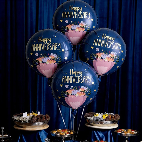 Head aastapäeva fooliumist ümmargune õhupallon ümmargune ja täis, erinevate stiilidega, mida saab valida vastavalt saidile ja kaunistusvajadustele. Head aastapäeva fooliumist kirjaõhupall, ühendatud tähtede kuju on selge ja kergesti täidetav, lisades pidustuslikku atmosfääri romantikat ja soojust.