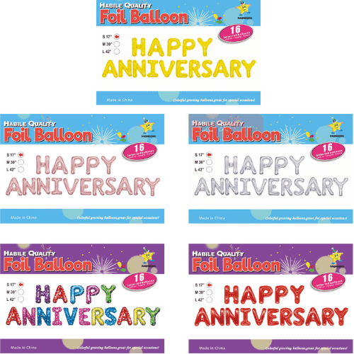 Õnneliku aastapäeva jaoks mõeldud fooliumballoon 16 tolli kaunistamiseks, 32 tolli põhitausta jaoks ja 40 tolli suurtel pidudel.