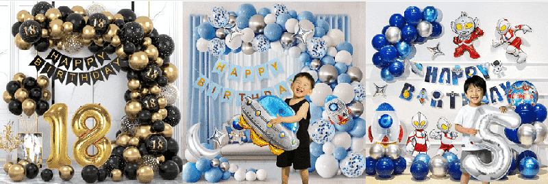 Põhilise kollokatsiooni alusel lisage sünnipäeva paberibänner, et täiustada palju õnne sünnipäevaks mõeldud õhupallide komplekti hierarhiat ja teema väljendust. Paberbänner saab valida sama stiili nagu õhupall, näiteks multifilmi lipp lasteteemalise õhupalliga, pronkslipp kõrgekvaliteedilise täiskasvanute õhupalliga. Muutke dekoratiivsed detailid täidlasemaks. Selline kollokatsioon sobib pere sünnipäevapeoks ja väikeseks sõbrapeoks, mõõdukate kuludega ja täieliku atmosfääriga.