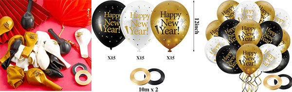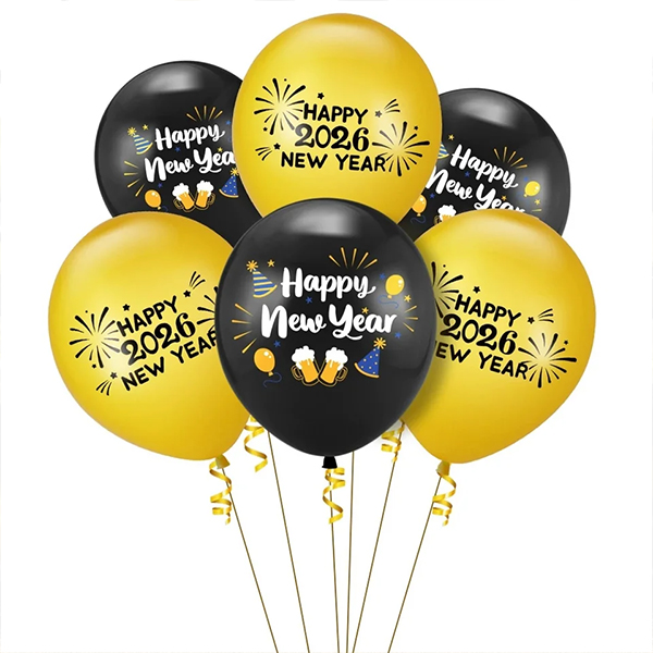 Uusaastateemalised latekspallid on dekoratiivsed õhupallid, mis on saadaval komplektidena ja millel on uusaasta kujundus nagu "Head uut aastat" või pidulikud värvid nagu must, kuld ja hõbe. Need sobivad suurepäraselt pidudeks ja neid saab kasutada õhupallikaarte, lillekimpude loomiseks või lakke riputatuna. Kõik Borun Balloon Factory pakutavad uusaastateemalised latekspallid on valmistatud täielikult lateksist ja vastavad Happy New Party Latex Balloons CE sertifikaadile. Niuni kaubamärk toetab nende uusaastateemaliste lateksõhupallide hulgimüüki. Need Happy New Year latekspallid on nii praktilised kui ka esteetiliselt meeldivad, pakkudes nii kulutõhusat kui ka loomingulist disaini. Need tõstavad koheselt pidulikku õhkkonda ning toovad soojust ja rõõmu igasse pidustusse.