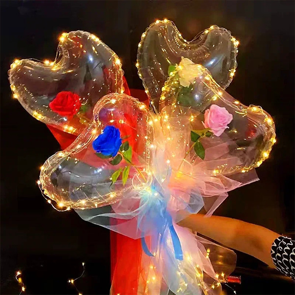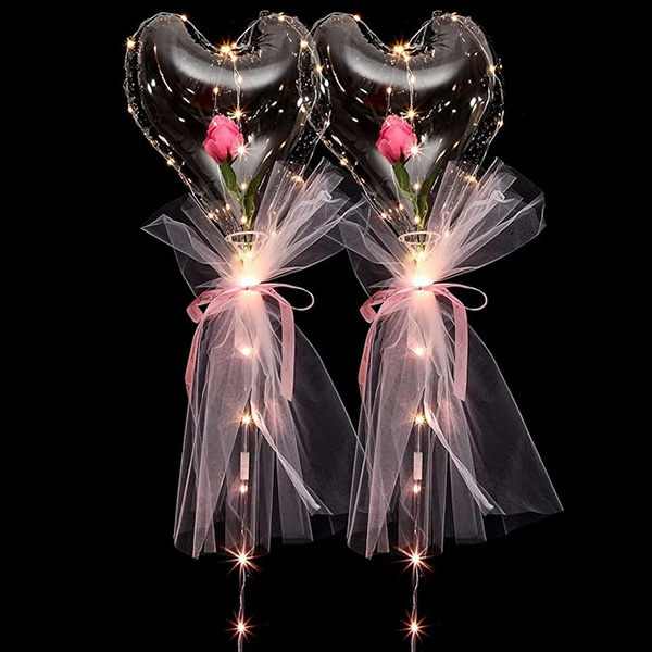 See meie poolt toodetud südamekujuline bobo õhupalli roosikomplekt sisaldab südamekujulist laineõhupalli, kunstroosilille, led lampi, valgustit, linti ja marli. Sellel südamekujulisel bobo õhupalli roosikomplektil on valida erinevate kunstrooside vahel. Oleme selle kokku sobitanud vastavat värvi paelte ja lõngadega. Selle südamekujulise bobo õhupalli suurus on 7-8 cm, mis võimaldab teil täita lilli ilma õhupalli laiendajat või õhupalli täitmise masinat kasutamata. Need läbipaistvad plastikust õhupallid sobivad väga hästi erinevatel puhkudel, näiteks pulmadeks, kihlumistseremooniateks, koolilõpupidudeks, sünnipäevadeks ja erinevateks sündmustestseenide pidamiseks, mis võivad teie tegemistele lihtsalt elegantsi lisada.