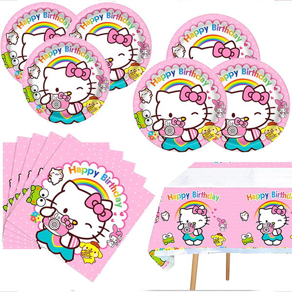 3) Lauanõud: Hello Kitty lauanõusid saab endiselt siduda roosade ja valgete peotarvete komplekti ainulaadse mustriga kujundusega, et luua peole armas õhkkond. Kõik tooted on väga vastupidavad, erksavärvilised ja kvaliteetse tunnetusega.
