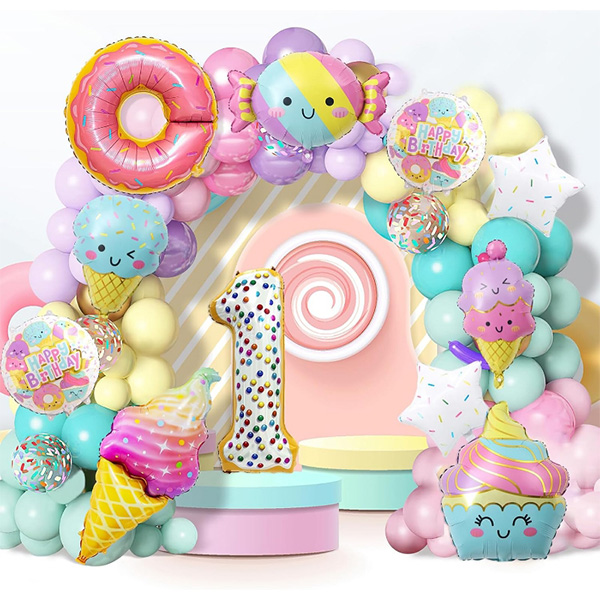 Ideaalne jäätiseteemalisteks sünnipäevadeks, beebide ristimispidudeks. Kaunista oma sünnipäevapidu ja muud erilised sündmused, mida soovid kaunite jäätiseõhupallidega koos värviliste lateksõhupallidega. Muutke oma pidu hämmastavaks.
