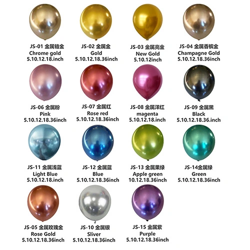 Metallist õhupallid:Kõrgläikega peegelviimistlusega ning pilkupüüdvate tekstuuride ja värvidega on need kõige mitmekülgsemad lateksõhupallid, mida saab kasutada peokaunistuste, kohandatud printimise ja muu jaoks.