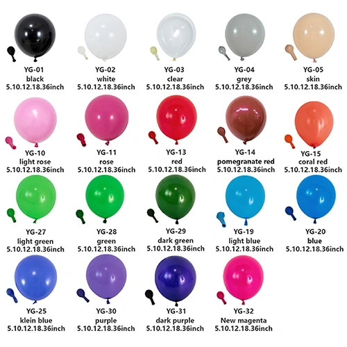 Lateks õhupallid on laialdaselt kasutatavad dekoratiiv- ja meelelahutusesemed. Need õhupallid on erinevate värvide ja kasutusviiside tõttu väga populaarsed erinevatel juhtudel. Kvaliteetsed õhupallid võivad luua üllatavaid visuaalseid efekte ja vastata erinevate stsenaariumide vajadustele alates mattpunasest, kollasest, sinisest ja rohelisest kuni retroroosa ja lillani ning seejärel metalliliste toonideni nagu kuld ja roos.
