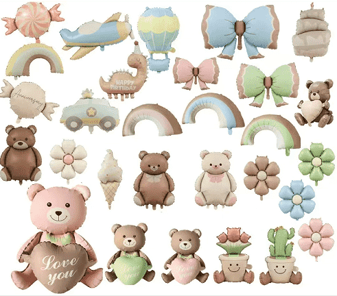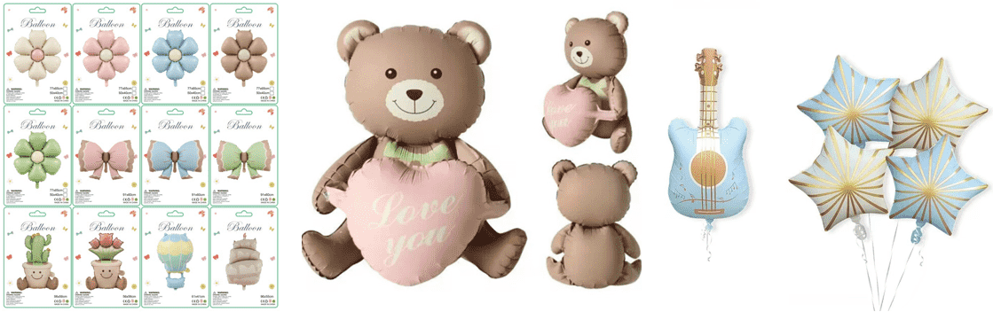 Pakume fooliumist õhupallide mustri ja suuruse modelleerimist, sealhulgas alumiiniumfooliumist õhupallikomplekti, õhupallipärja komplekti, sünnipäevapeo kaunistusi, samuti saab kohandada pakendit.