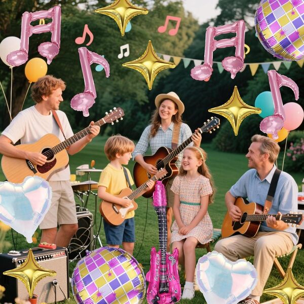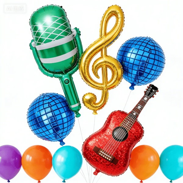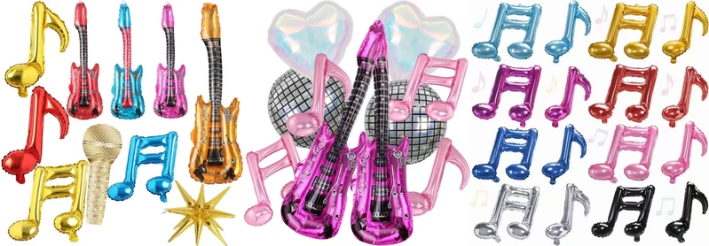 Muusikafooliumist õhupallidsaadaval on erinevat tüüpi, näiteks muusikariistade fooliumõhupallid (kitarri fooliumõhupallid, mikrofoni fooliumõhupallid) ja nootide fooliumõhupallid. Kuna popmuusika muutub üha populaarsemaks, on neil praegu suur turg. Näiteks film: Kpop Demon Hunters on nüüd USA-s viirus. Paljud Ameerika teismelised loodavad lisada oma sünnipäevapidudele asjakohaseid muusikalisi elemente, et avaldada austust sellele filmile. Et rahuldada kõiki klientide vajadusi, oleme neile valmistanud erinevad värvid: poiste jaoks saate kasutada tumesinist, sinist, musta ja pruuni; tüdrukute jaoks võite kasutada roosat, heleroosat, lillat ja nii edasi. Sind ootab alati sobiv värv. Need on väga paindlikud ja saate neid mis tahes viisil kombineerida. Näiteks lisage mõned lateksist õhupallid, et teha muusikafooliumõhupallide vanikukomplekti. Või kasutage mitut õhupalli, et teha muusikafooliumõhupallide väike komplekt.