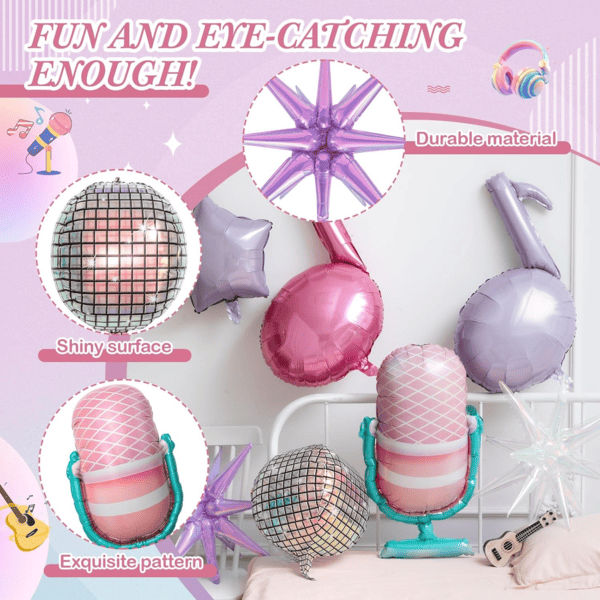 Muusikafooliumist õhupallide vanikute komplekt:Olgu see värviline või mustvalge, sellel komplektil on väga tugev väljendusjõud. Fooliumist õhupallide suurus on üle 18 tolli. Saate valida soovitud efekti järgi.