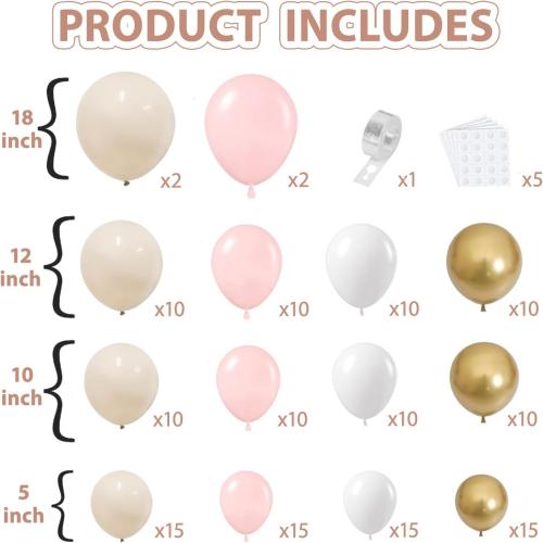 Nagu üks populaarsemaidõhupallikaare komplektidturul valib igast 10 kliendist umbes 8 selle stiili. Seda seetõttu, et meie kvaliteetne roosa beež valge õhupall sobib väga hästi pulmapeoks, sünnipäevaks, beebiõhtuks, soo paljastamise peoks ja nii mõnelgi teisel korral, nii et kliendid armastavad neid.