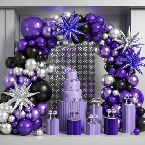 Kvaliteetsed lillade ja mustade õhupallide vanikukomplektid võimaldavad teil segada ja sobitada musti ja lillasid õhupalle. Neid saab kombineerida mustad ja lillad õhupallid hõbedaste õhupallide või hõbedast fooliumist õhupallidega, et esile tõsta õhupallide vanikukaare komplekte. See sobib ideaalselt lõpupidudeks, täiskasvanute tseremooniateks ja muudeks verstapostiks peetud pidustusteks, kehastades rituaalitunnet, kui noorusega hüvasti jäetakse ja täiskasvanuikka astutakse. Neid saab kombineerida ka mustad ja lillad õhupallid kuldsete õhupallide või kuldfooliumist õhupallidega. See sobib ideaalselt näiteks ettevõtete tähtpäevadeks ja uute kaupluste avamiseks, kuna sellest õhkub professionaalsust ja rafineeritust, edastades samal ajal kõrgetasemelist mainekat kaubamärgipilti. Neid saab siduda ka siniste õhupallidega, et luua futuristlik välimus. Need õhupallikomplektid sobivad eriti hästi elektrooniliste spordialade, trendikate ja ulmeteemaliste pidude jaoks, pakkudes silmatorkavat visuaalset mõju.