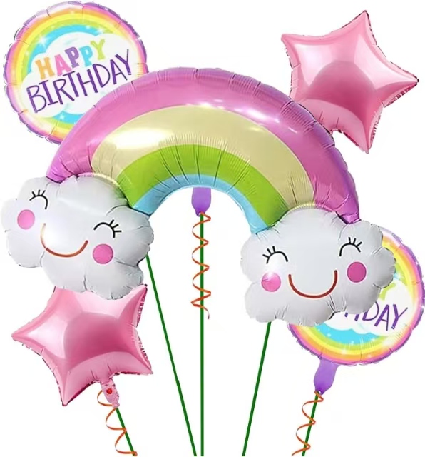 See vikerkaare fooliumist õhupallikomplekt on ka üks meie kuumalt müüdavatest toodetest. Sellel komplektil on erinevad valikud, mida saab sobitada vikerkaare fooliumõhupallide, ümmarguste ja tähtedega fooliumõhupallidega, numbritega fooliumõhupallidega ja lateksõhupallidega. Kui soovite kombineerida erinevaid õhupallikomplekte, saame teie jaoks kohandada teie õhupallikomplekti. Ja kõik meie tehase õhupallikomplektid rakendavad redeli hinda, kui ostate vikerkaare fooliumist õhupallikomplekte hulgi, pakume soodsamaid hindu. Vikerkaare ja pilvede kujundid loovad meeldejääva ja ainulaadse peomeeleolu ning neid saab kasutada mitmel korral, säästes aega ja vaeva erinevate stiilide loomisel.