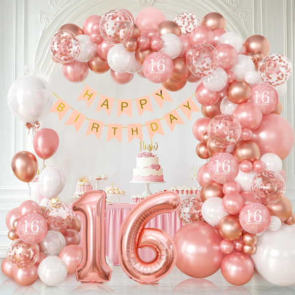 Sweet 16 õhupallikaare see pakett sisaldab lateksist õhupalle, fooliumist õhupalle, sünnipäevabännereid, liimitäppe, paelu jne. Kui teil on erivajadusi, saame kohandada ka õhupalli suurust, kogust, värvi jne vastavalt teie nõudele.s.