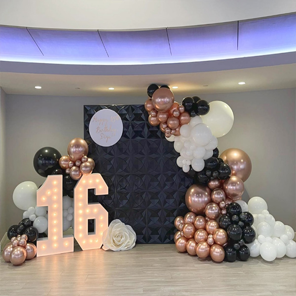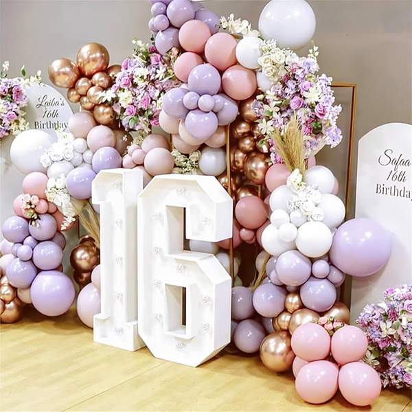 16 led-valgusega õhupalli pärg:Meie tehas tõi turule ka 16 aastat vana led-tulega õhupallipärja. LED-numbrivalgustid on valmistatud keskkonnasõbralikest materjalidest ABS ja LED, et tagada eredad ja püsivad valgusefektid. LED-tuled numbrite ja tähtedega, mis võivad pimedas helendama. Pehme valgustus loob pingevaba ja mugava atmosfääri ning lisab igale ruumile ainulaadse võlu. Neid saab välja panna iseseisvalt või riputada seinale, kaminale või paigutada vastuvõtualale kasutamiseks ürituste või pidustuste ajal. Kaasahaarava peomeeleolu loomiseks sobivad õhupalliga vanikvõlvidega LED-numbrivalgustid on hädavajalikud rekvisiidid ainulaadsete ja unustamatute fotode tegemiseks, lisades 16. sünnipäevale unustamatu tseremooniatunnetuse.