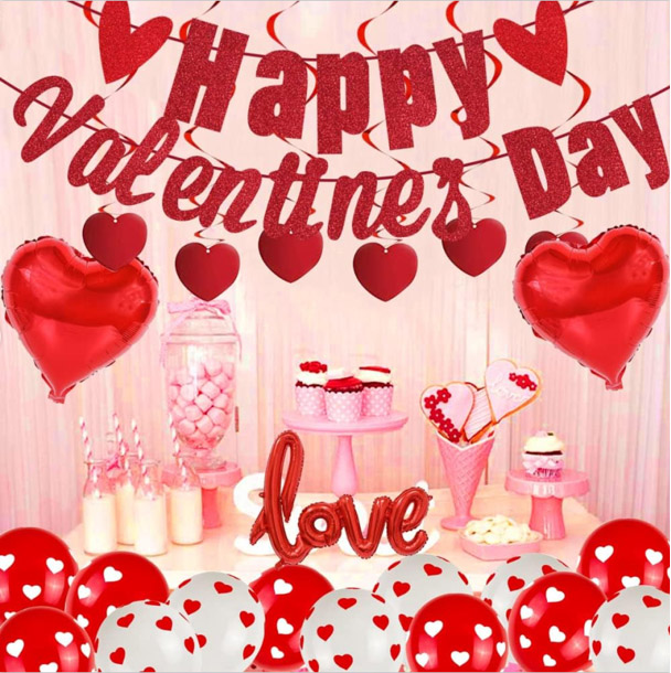 Õhupalli kaarekomplekt sisaldab: 25-tollist armastusefooliumi õhupalli, 16-tollised L Love You Balloononid, 27-tolline karufooliumi õhupall, 26-tollised i Love U Fooliumi õhupallid, 12-tollised südametrükitud punased latekspallid, 10-tollised südametrükid valged latekspallid, siidist roosiga kroonlehed, õhupallilint, paelad, ja film.