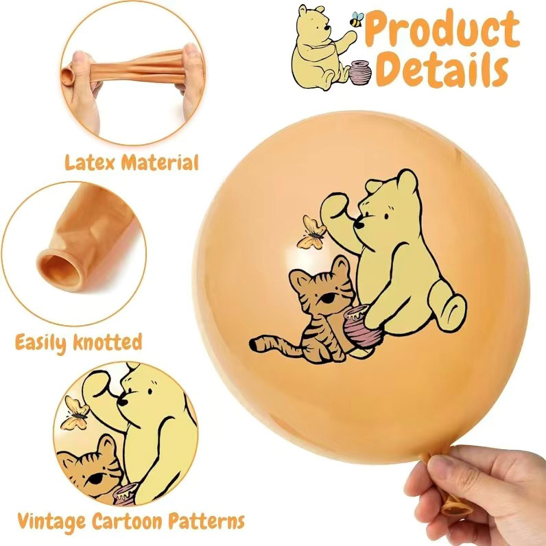 Karupoeg Puhhlateksist õhupallidon palju kuulsaid tegelasi. Seal on Karupoeg Puhh, Põrsas, Eeyore ja teised. Ka väikesed mesilased lendavad poti ümber. Kõik need panevad õhupallidele Saja Aakri metsa õnneliku stseeni. Iga muster kopeerib hoolikalt animatsiooni üksikasju. Karupoeg Puhhi armas välimus paistab õhupallidel silma. Ka põrsa mänguline stiil paistab silma. Need panevad inimesed oma lapsepõlve kohe meelde. Lapsed saavad nautida selle IP võlu. Ka vanemad saavad seda nautida.