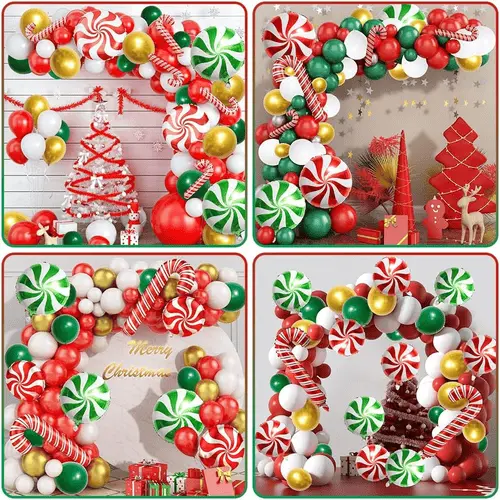 Kaasas jõuluõhupallikaarkvaliteetsed ja värvilised lateksist õhupallidja fooliumist õhupallid. Meie pakutav lateksist õhupall on valmistatud 100% toorlateksist, mis on imporditud Kagu-Aasiast. Kasutatava toorainena ja keskkonnasõbraliku trükivärvina on õhupallid täiesti keskkonnasõbralikud ja lastele kahjutud. Õhupallide värv on peamiselt punane ja roheline, mis tähistavad jõule. Kaunistuse lisamiseks kaasasime ka kuldsed õhupallid. Xmas õhupallikaare stiil on rõõmus, atraktiivne ja täis energiat.